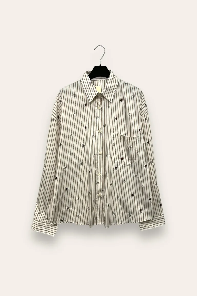 Description Camicia oversize a righe con farfalle ricamate