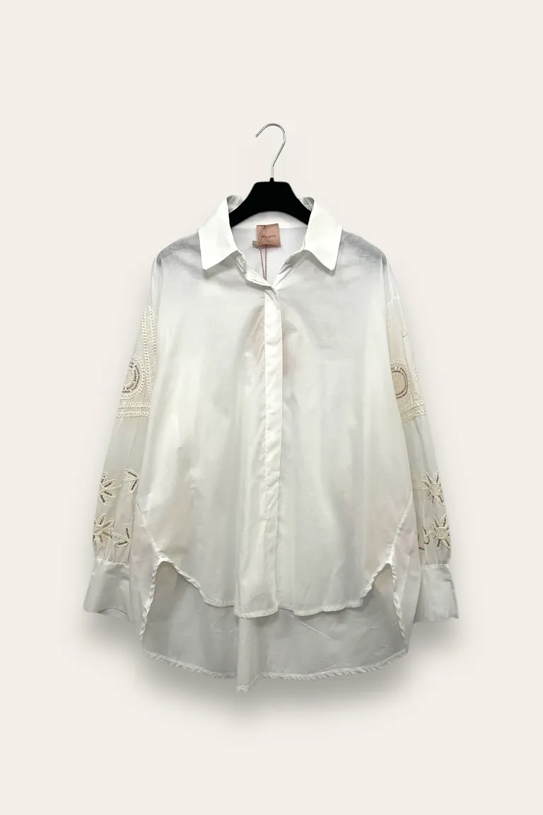 Camicia over con ricami e paillettes sulle maniche