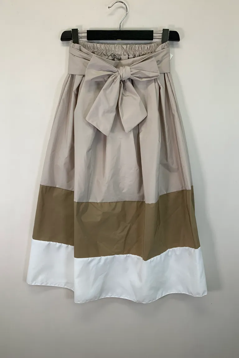 Gonna in taffetà tricolore, con fusciacca in vita