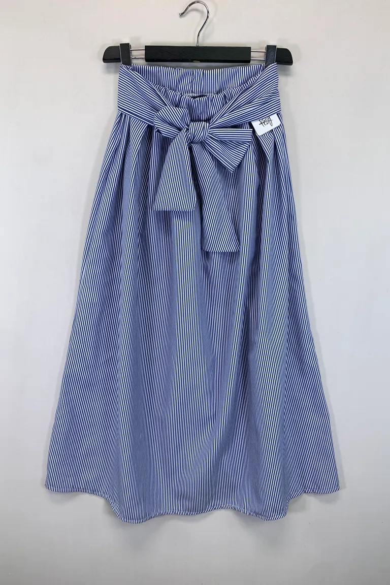 Description Gonna lunga a righe, fusciacca ed elastico in vita