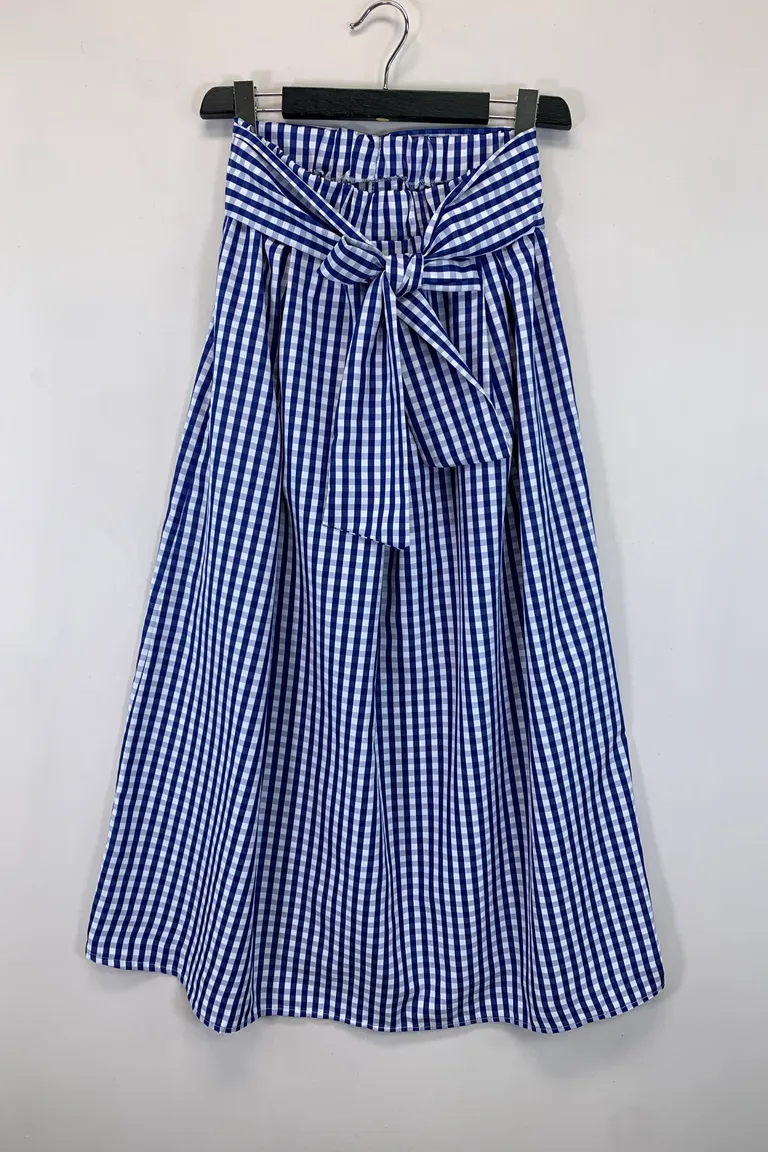 Description Gonna lunga a quadri, fusciacca ed elastico in vita