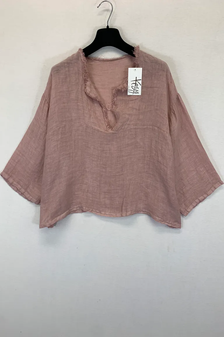 Blusa ampia in lino con scollo a V sfrangiato