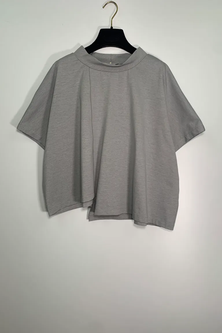 Blusa asimmetrica svasata, punto milano