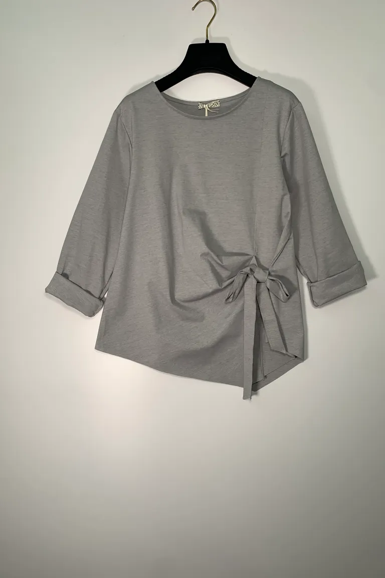 Description Blusa girocollo punto milano, fiocco sul fianco