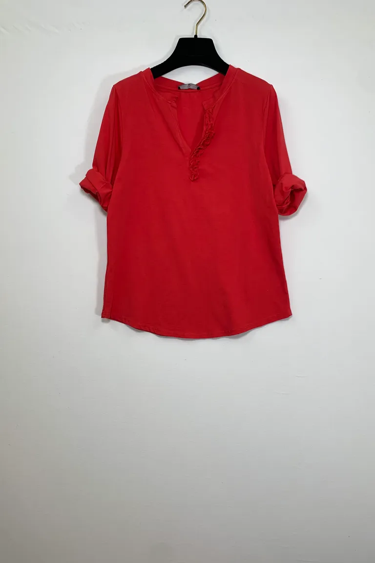 Maglietta scolloa V con ruches