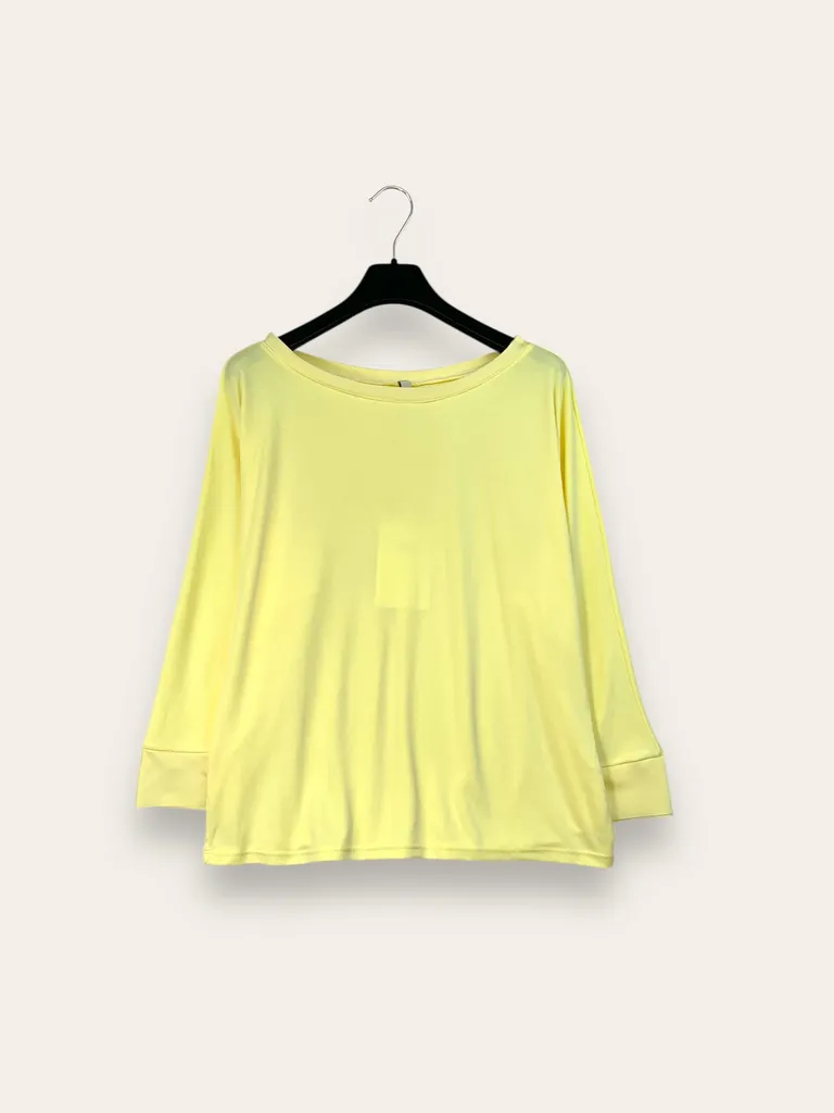 Description Maglietta in viscosa a coste sottile con profilo in raso