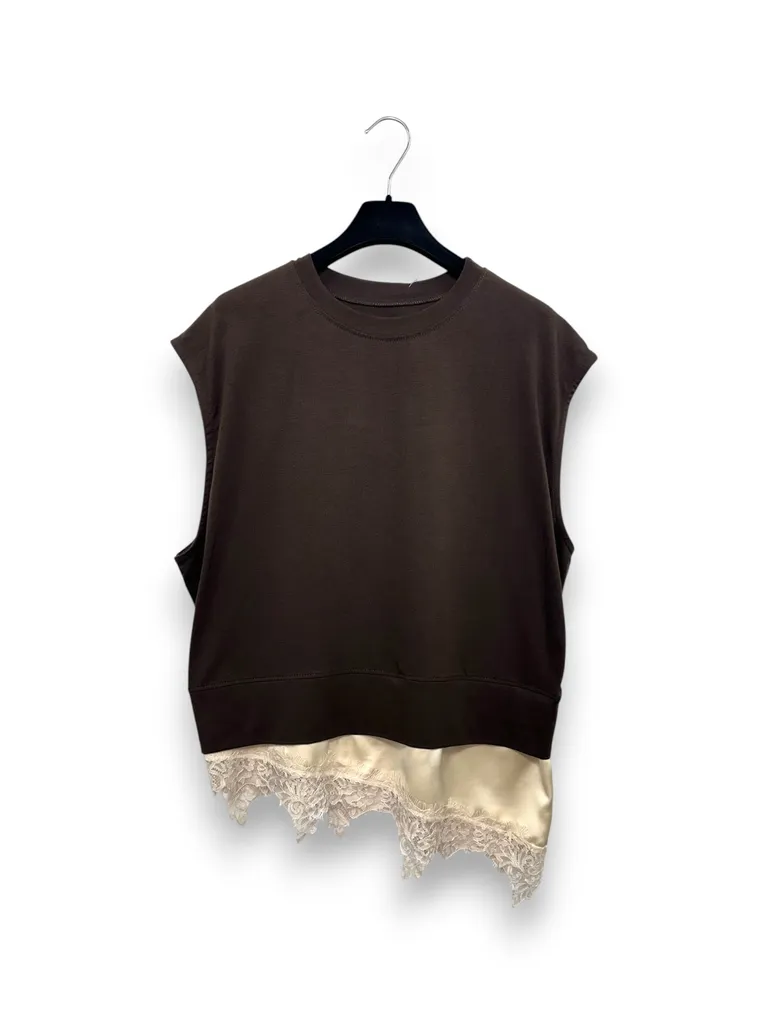 Description Maglietta over con fondo asimmetrico in raso e pizzo