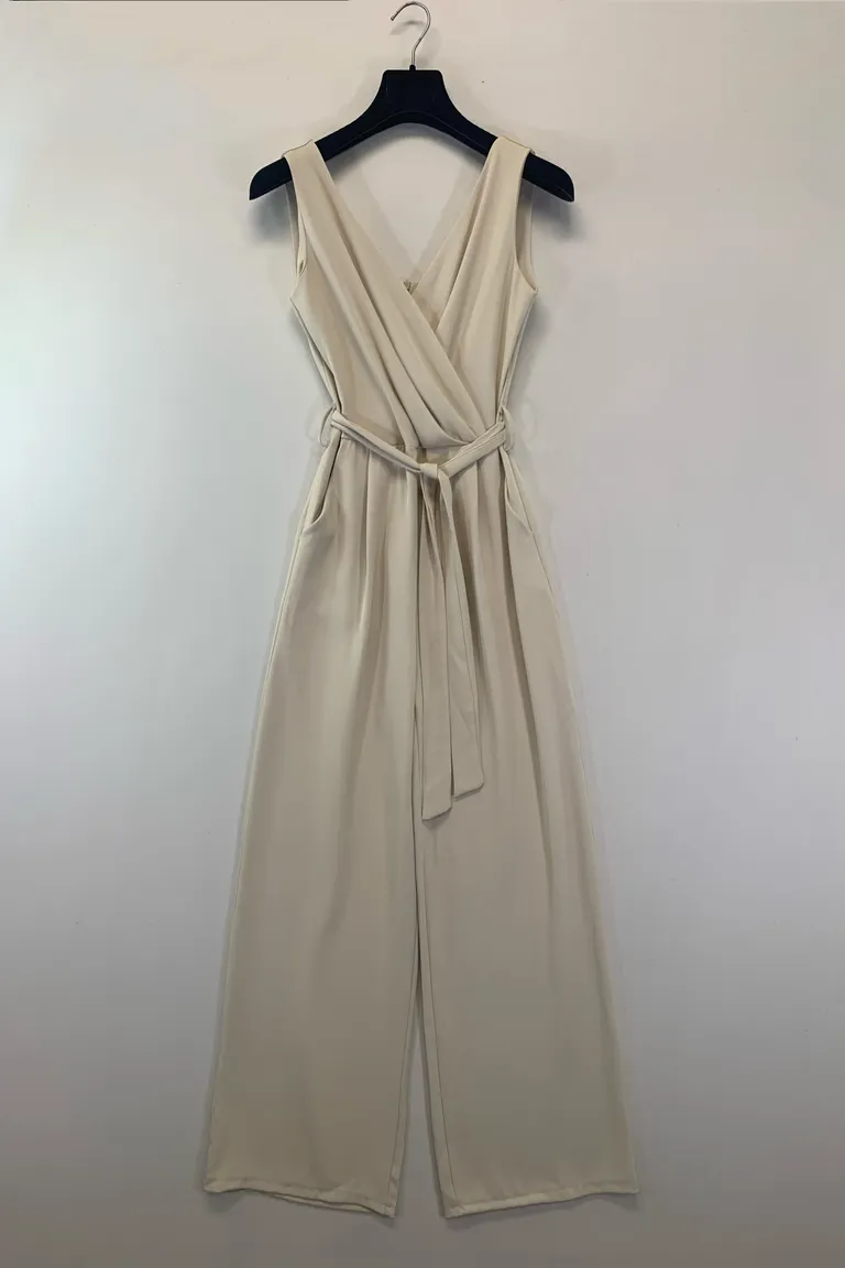 Description Tuta smanicatacon scollo incrociato, zip lungo la schiena