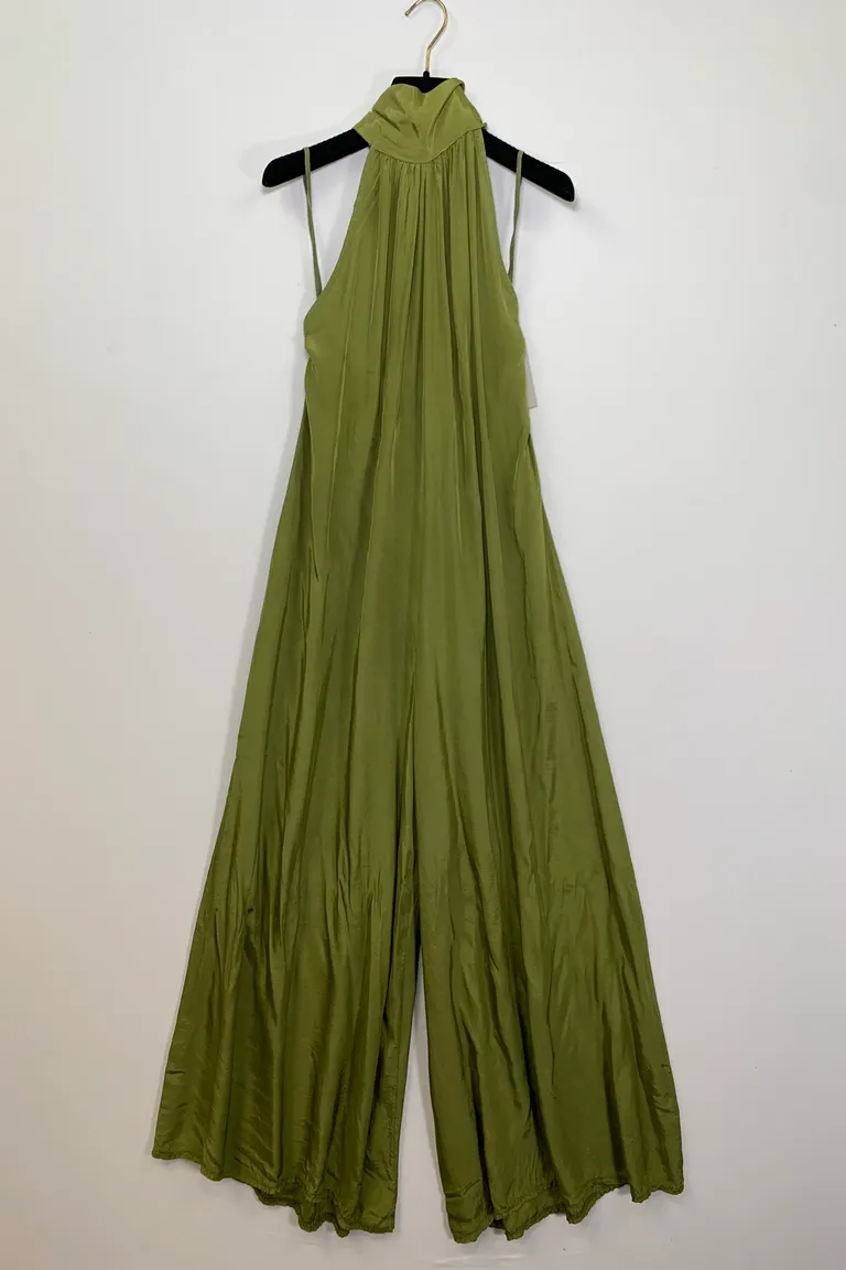 Tuta con fiocco dietro il collo, in viscosa lucida