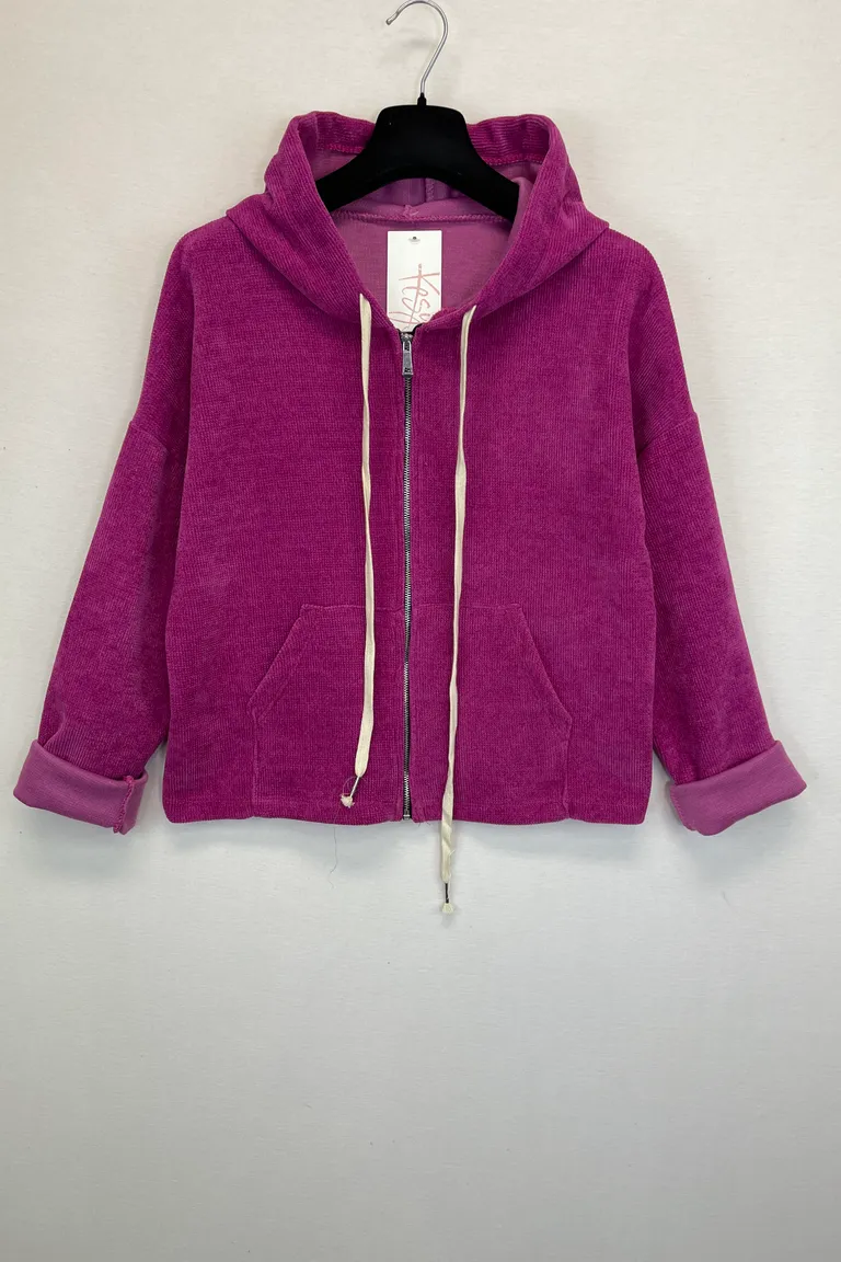 Felpa con zip, a costine, in ciniglia