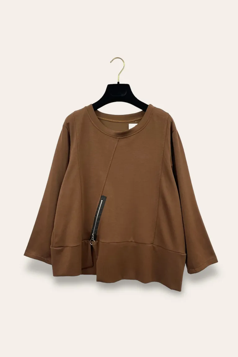 Felpa asimmetrica con zip decorativa
