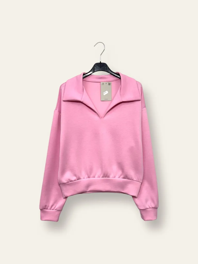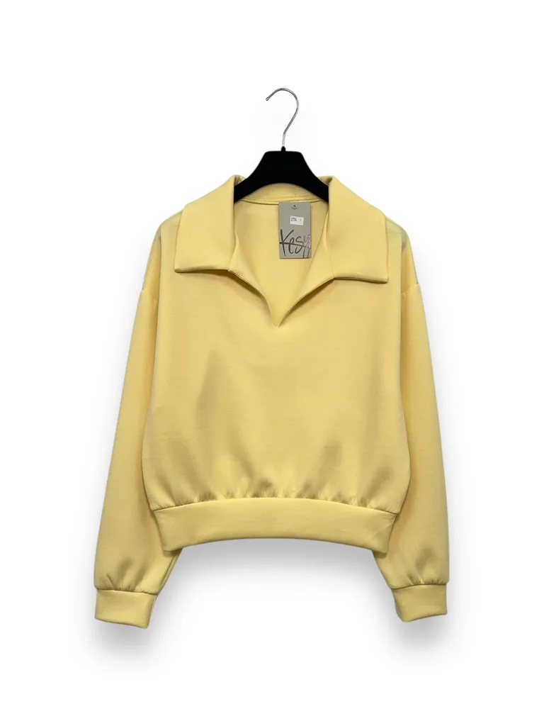 Felpa in scuba, scollo a V con colletto