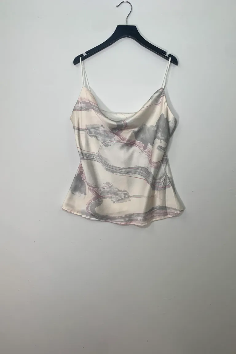 Canottain raso in fantasia, scollo morbido