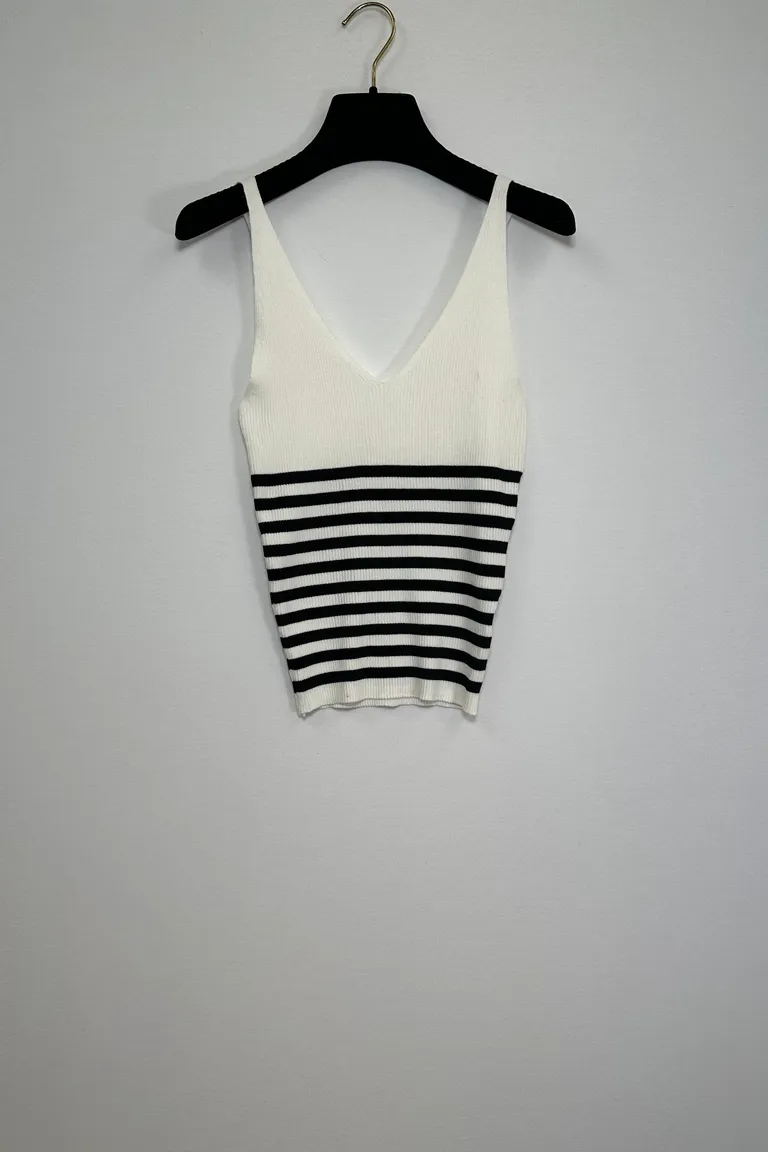 Description Top a righe, scollo a V davanti e sulla schiena