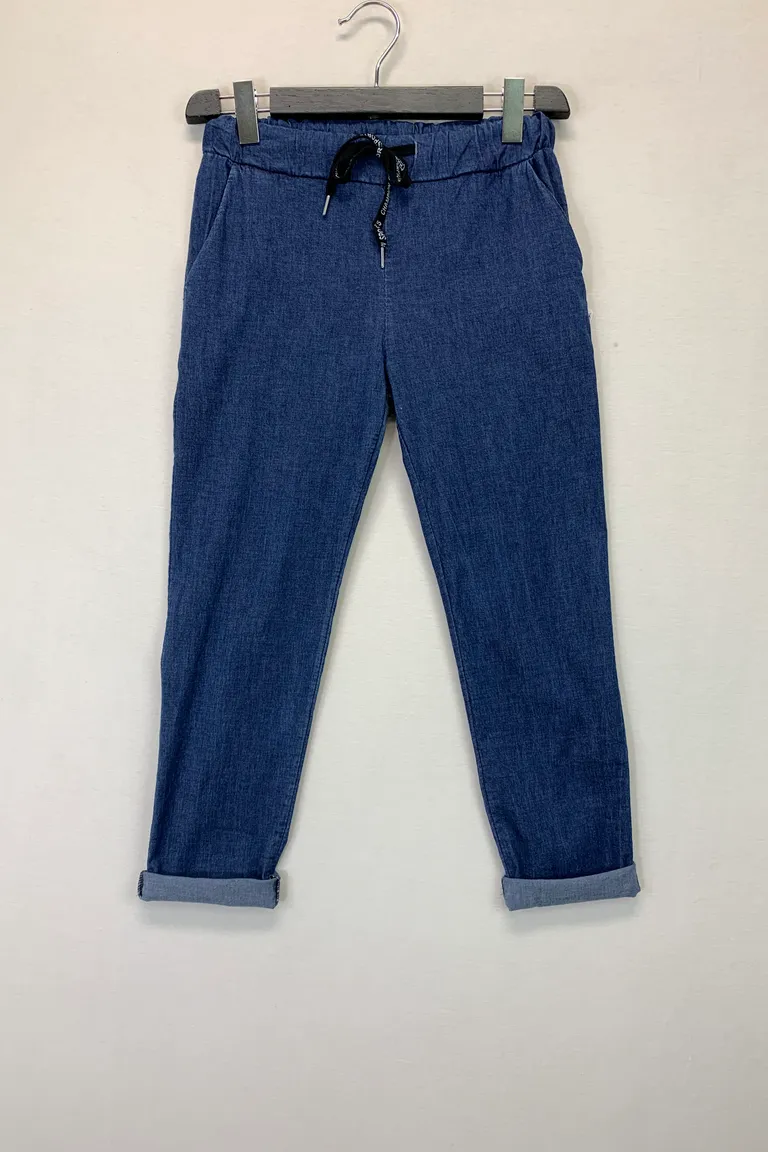 Pantalone effetto jeans, con coulisse in vita