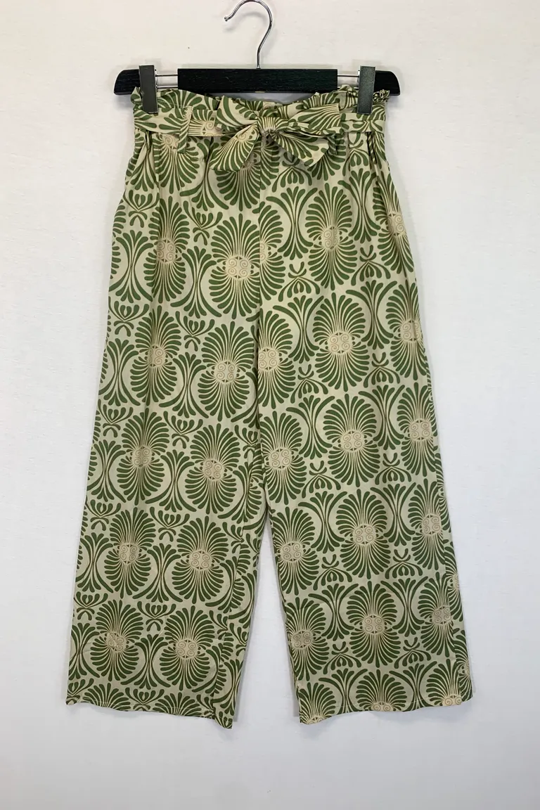 Description Pantalone gaucho in fantasia, con elastico e fusciacca in vita
