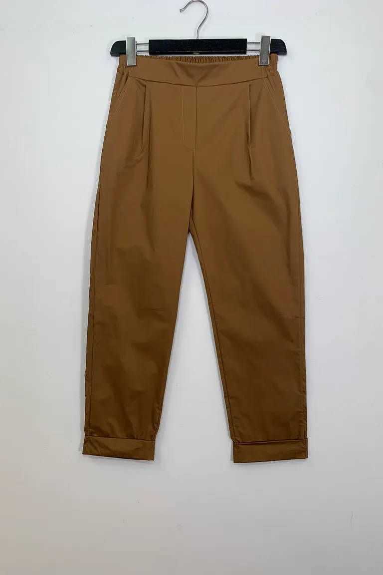 Description Pantalone dritto in cotone, elastico retro vita