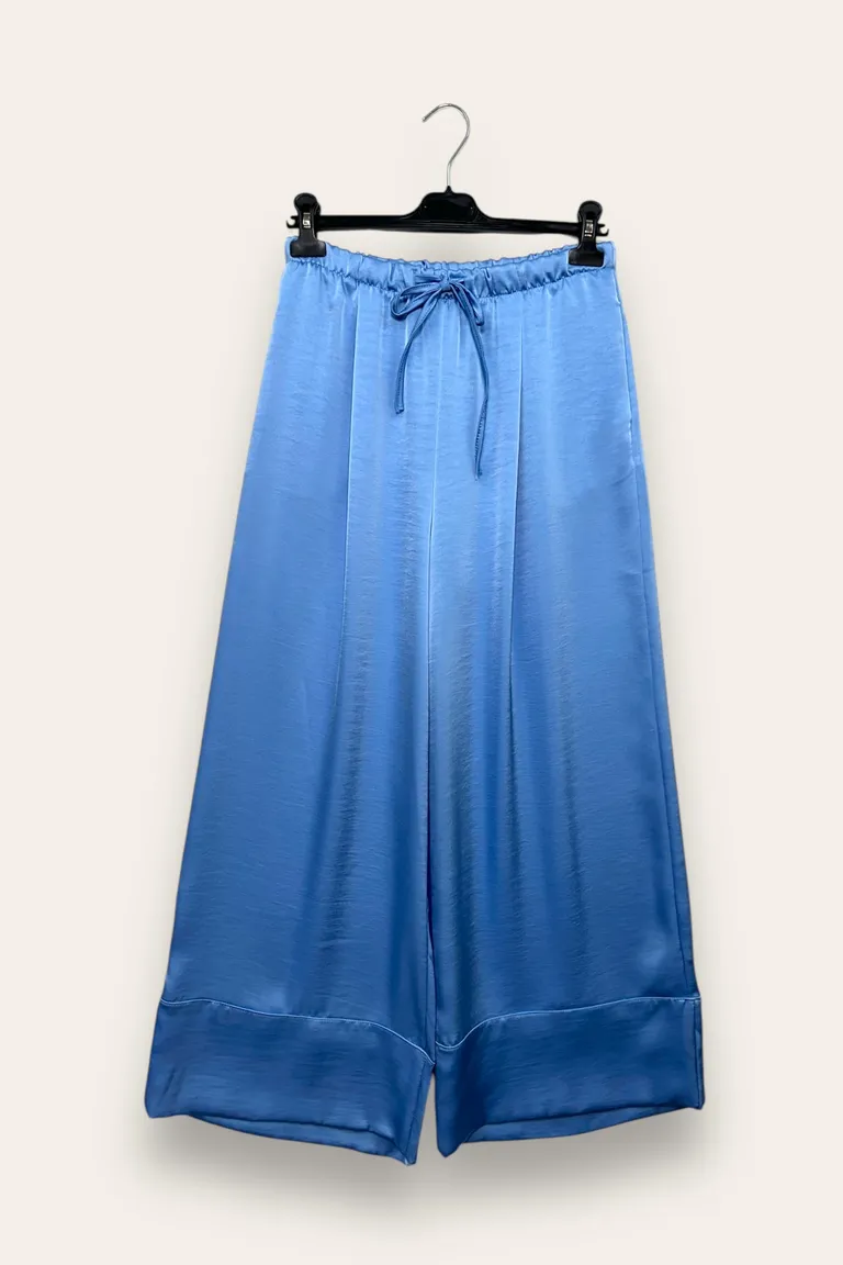 Pantalone in raso con finto risvolto