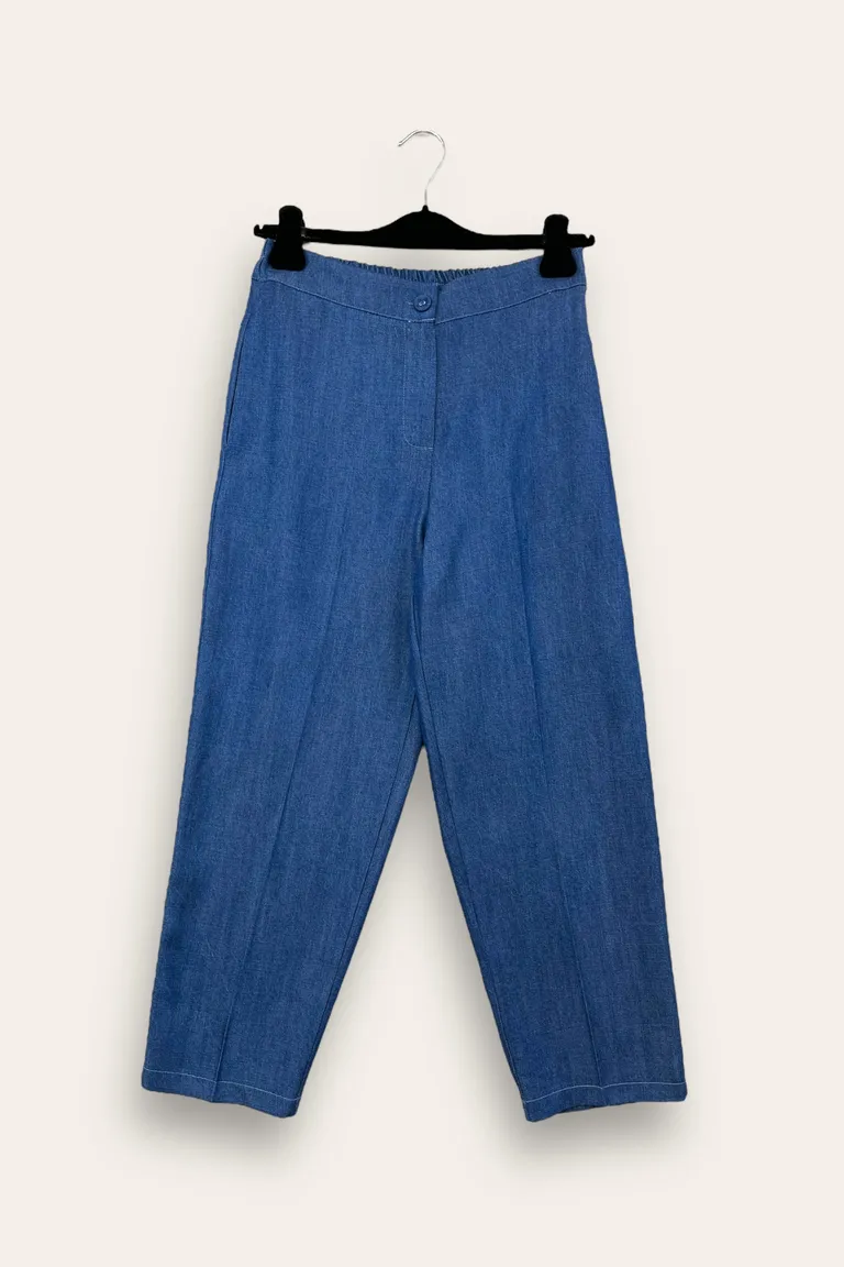 Description Pantalone baggy in denim, elastico retro vita