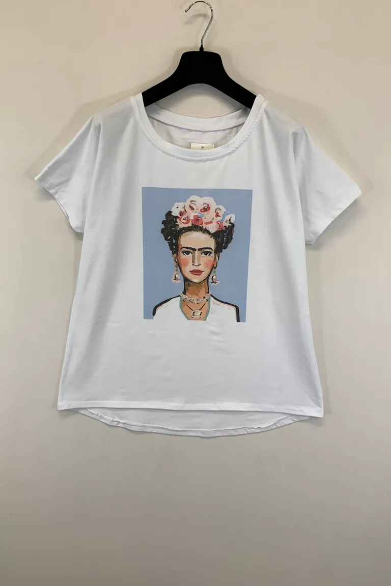 T-Shirt Over con stampo frida khalo