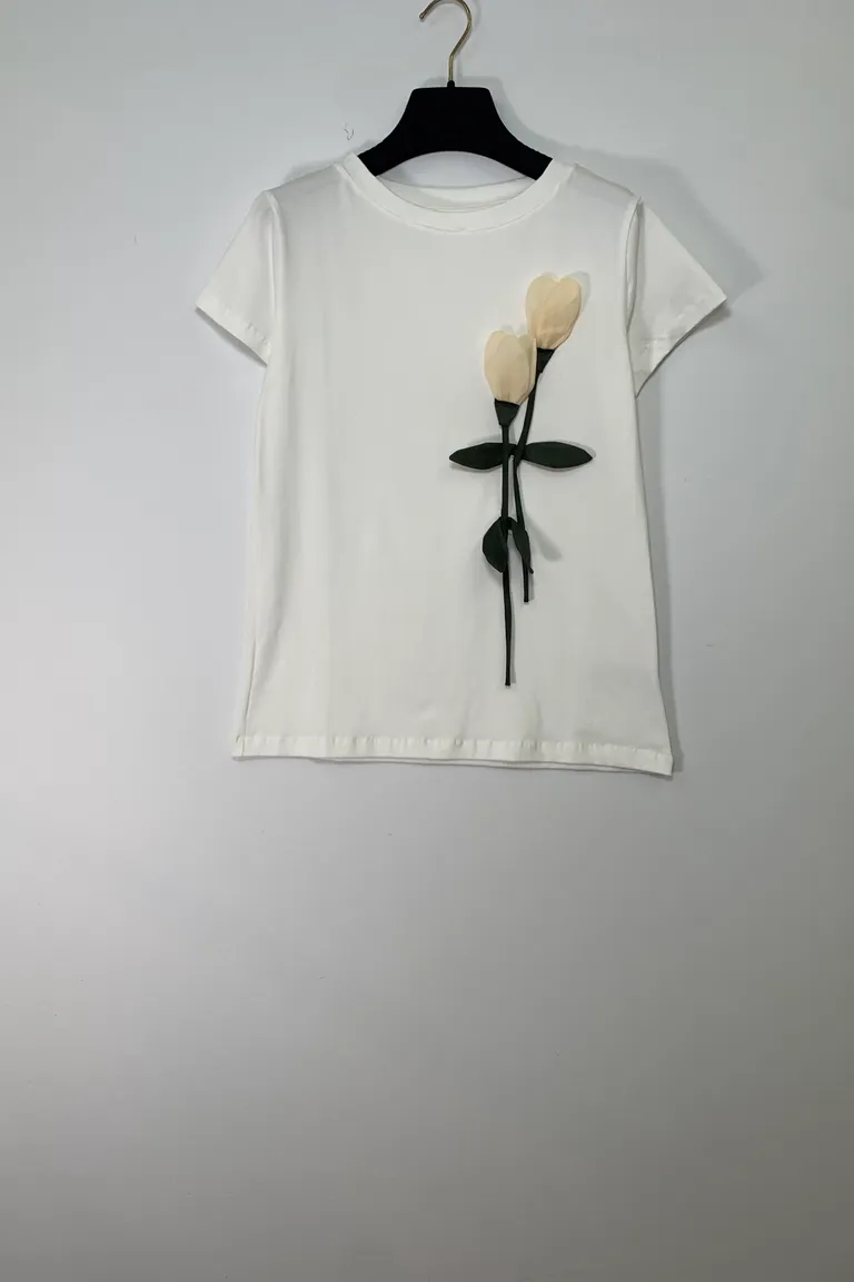 T-shirt con tulipani in raso applicato