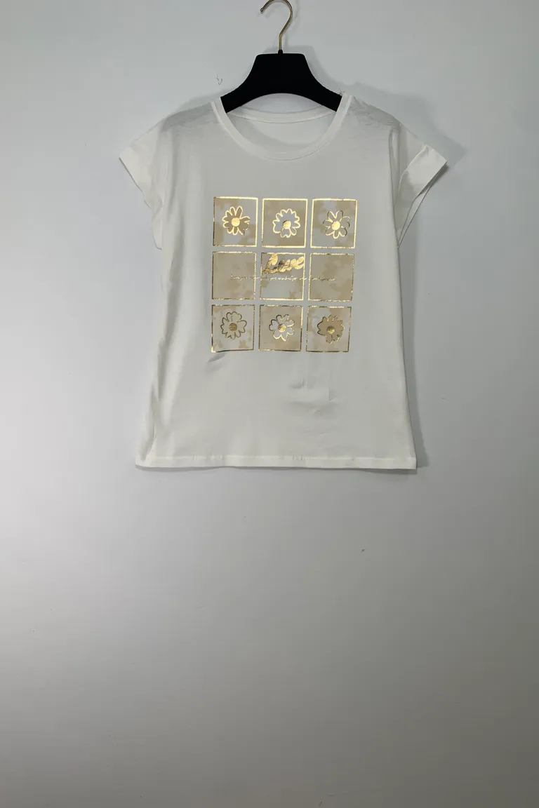 T-shirt con riquadri con margherite