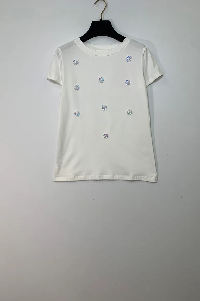 T-shirt con fiori di paillettes