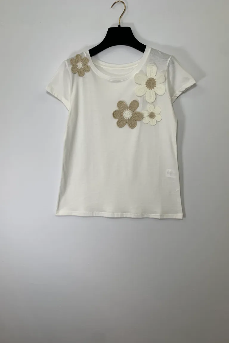 T-shirt con fiori all’uncinetto