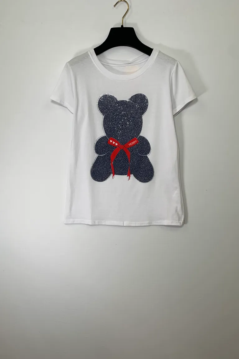 T-shirt stampa orsetto con strass