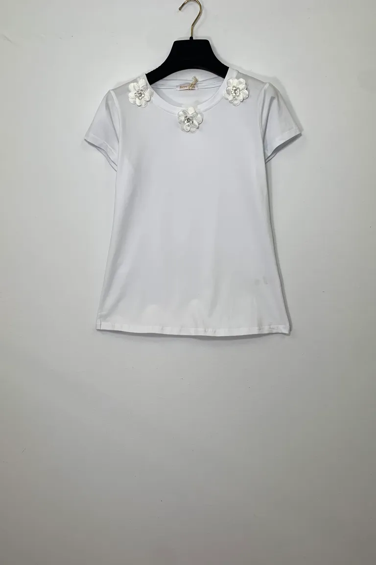 T-shirt con spille a fiori