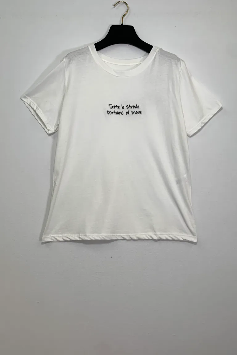 Description T-shirt con ricamo “tutte le strade portano al mare”