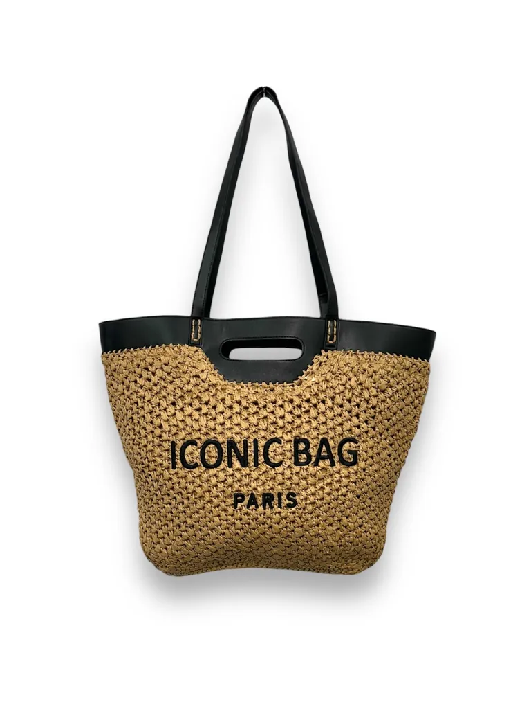 Descrizione Borsa shopper in paglia e ecopelle, con zip (50x35cm)