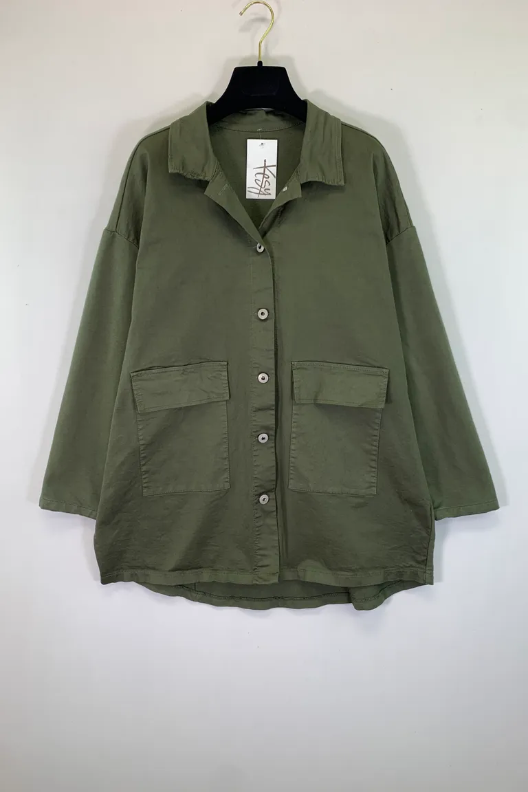 Descrizione Giacca a camicia lunga con tasconi e maniche in felpa