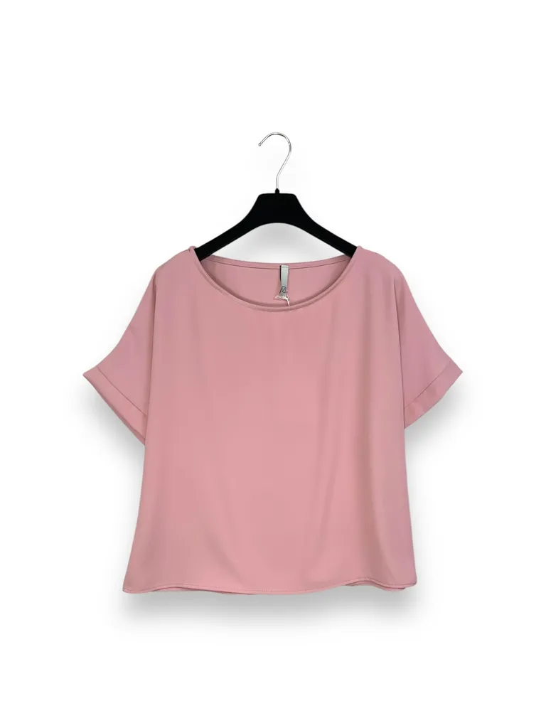 Blusa girocollo mezza manica tessuto fluido