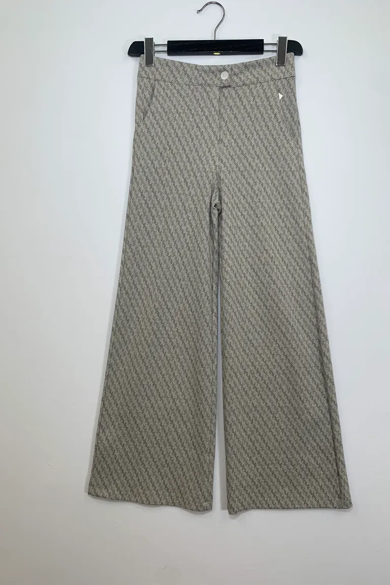 Descrizione Pantalone jacquard a palazzo, fantasia spigata